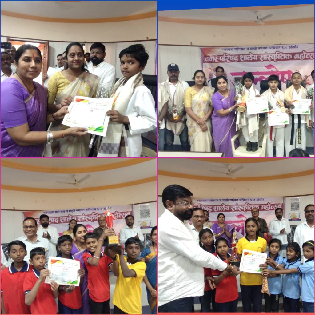 धामणगाव रेल्वे नगरपरिषदेच्या वतीने आयोजित करण्यात आलेल्या स्वच्छता महोत्सव माझी वसुंधरा अभियान 6.0 अंतर्गत नगरपरिषद शालेय क्रीडा व सांस्कृतिक कार्यक्रमाचे बक्षीस वितरण सोहळा आज मोठ्या उत्साहात संपन्न झाला. या कार्यक्रमात विविध सांस्कृतिक स्पर्धांमध्ये सहभागी झालेल्या विजेत्या स्पर्धकांना नगराध्यक्ष अर्चना अडसड रोटे अक्का व मान्यवरांच्या हस्ते बक्षिसांचे वितरण करण्यात आले. या प्रसंगी नगराध्यक्ष अर्चना अडसड रोठे अक्का व उपनगराध्यक्ष बंडू उर्फ गिरीश मुंदडा, गटनेते अण्णाजी चौधरी तसेच पाणीपुरवठा सभापती विलास बुटले व शिक्षण समिती सदस्य प्रियंका जवंजाळ यांची प्रमुख उपस्थिती होती.